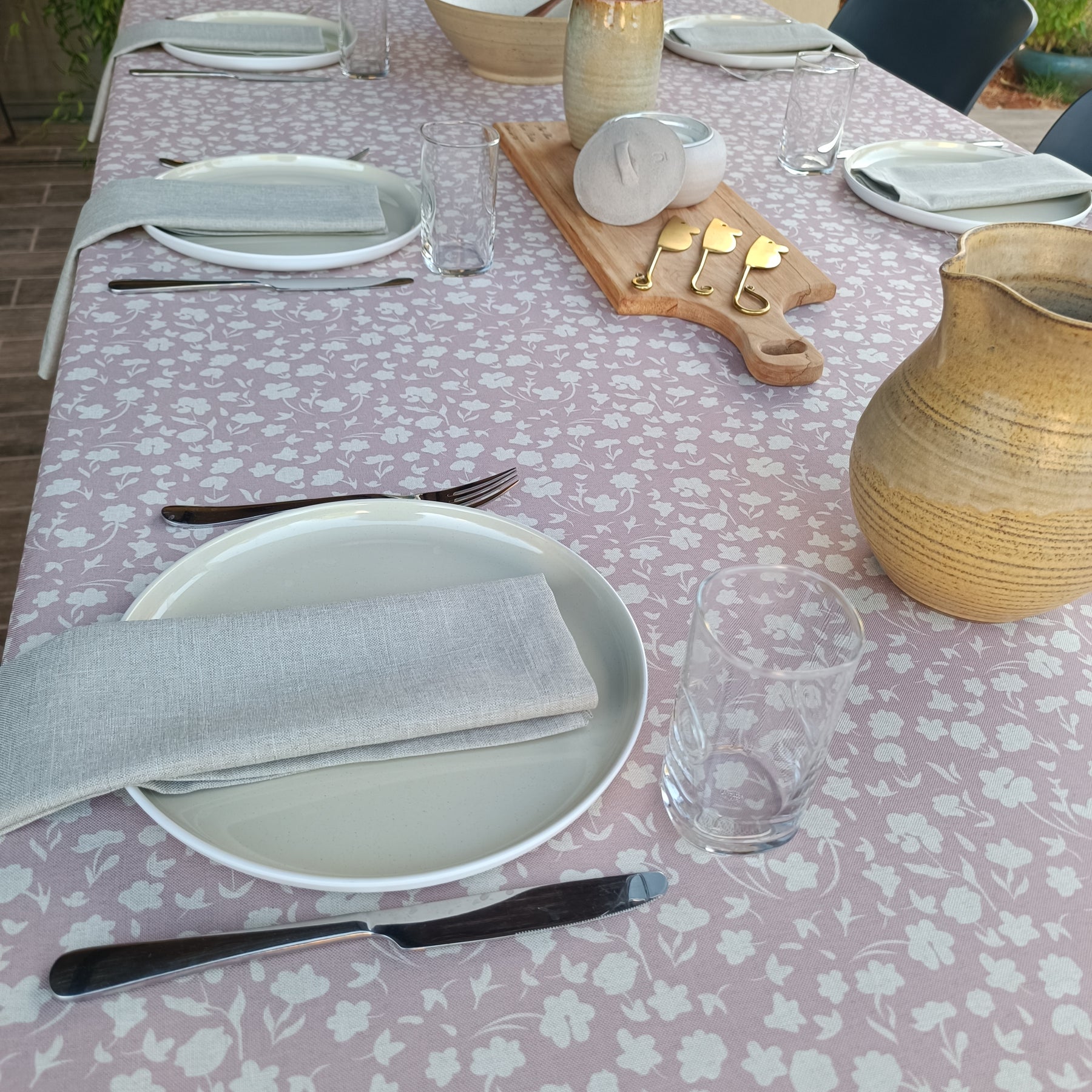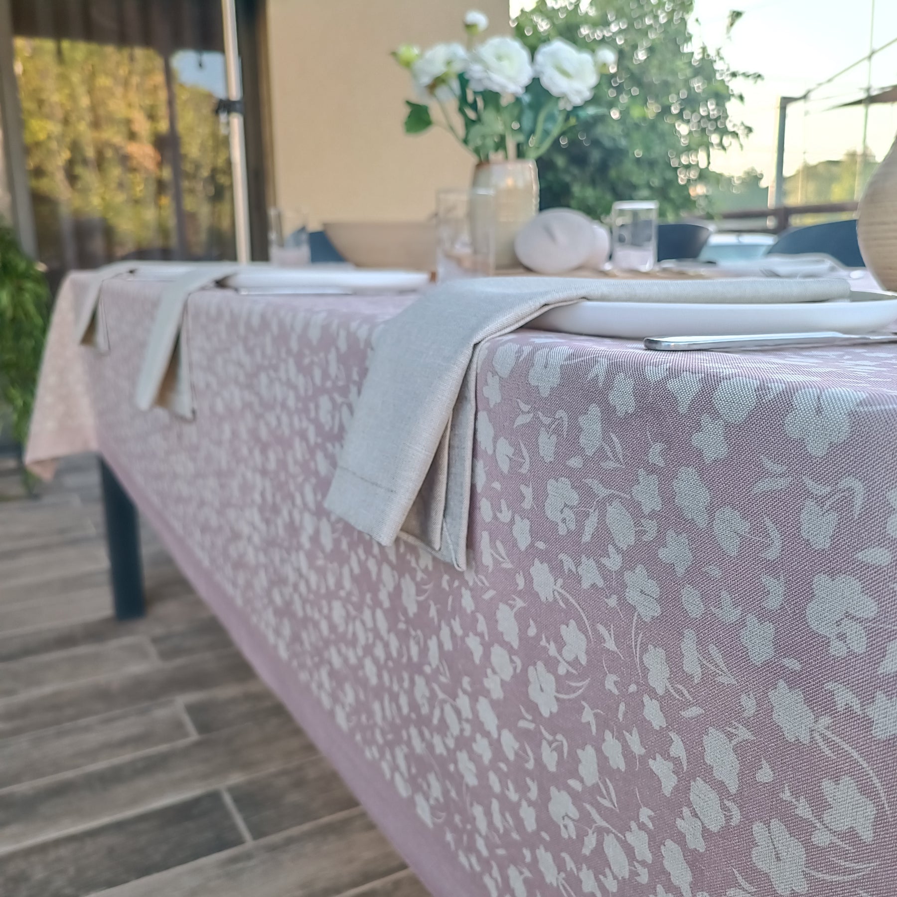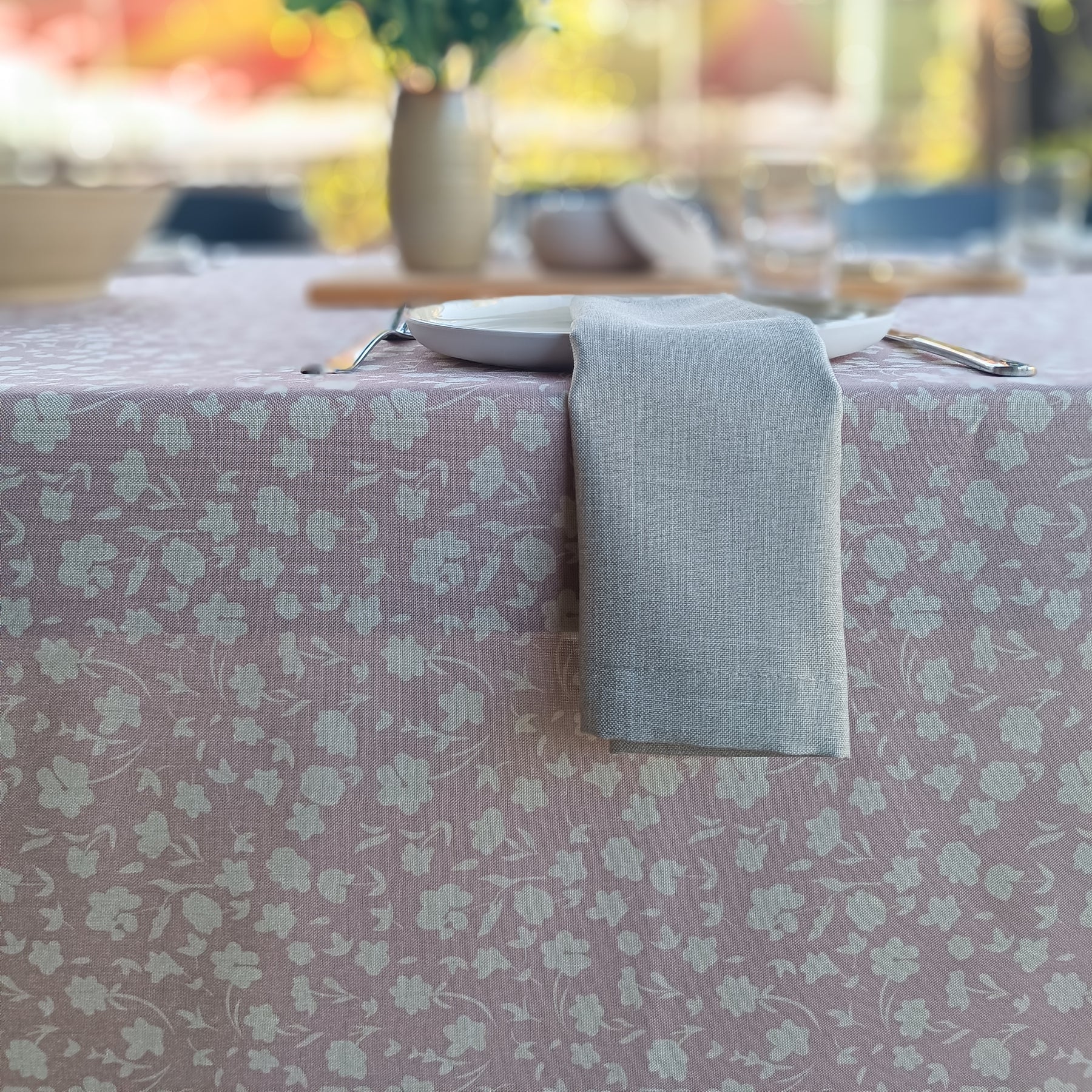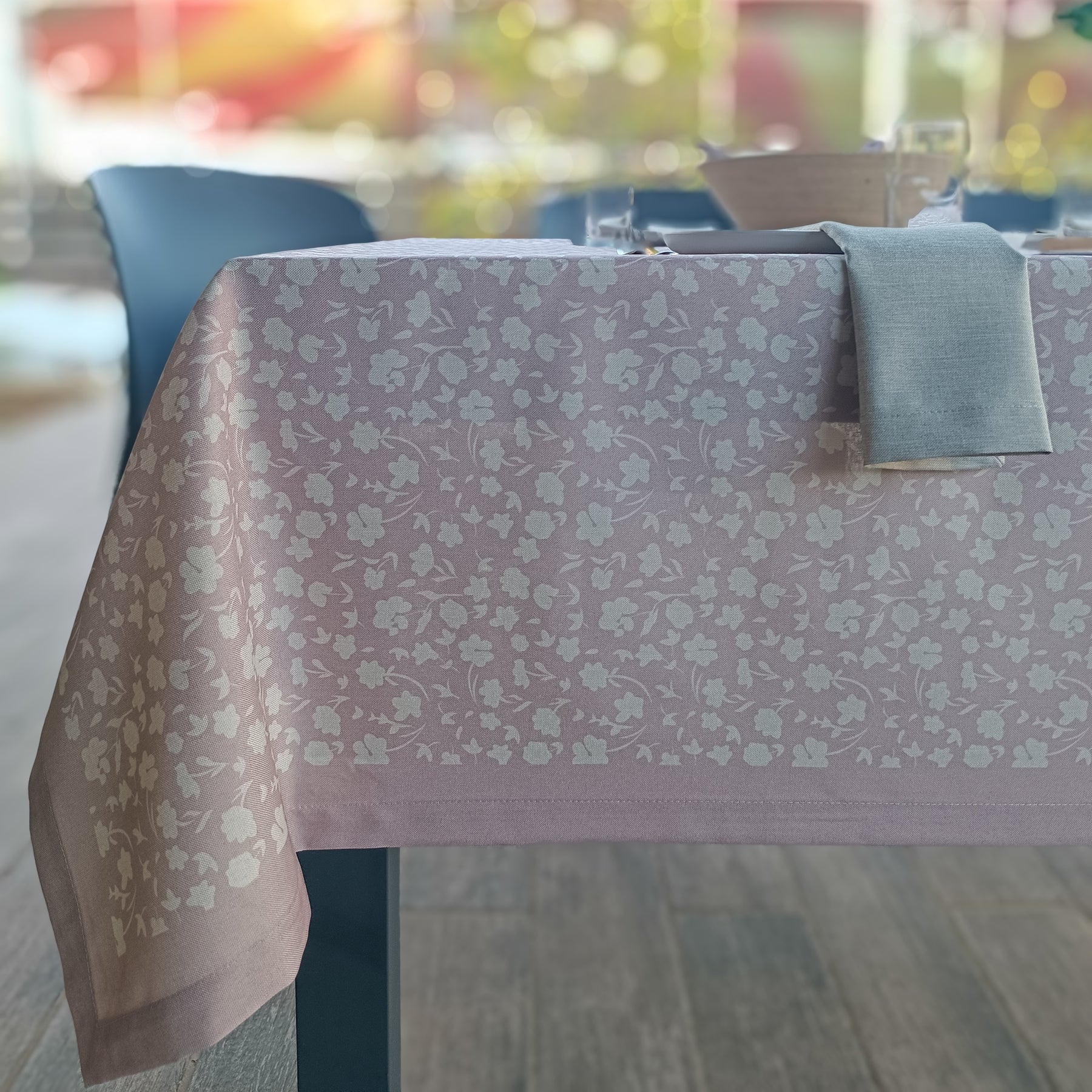 מפת שולחן פרחונית, רכה ומלאת חיים, בהשראת שדות פורחים וימי אביב נעימים. הדפס עדין בצבע ורדרד מרענן מעניק לכל שולחן מראה טבעי ומזמין. הבד מדמה פשתן יוקרתי אך עשוי 100% פוליאסטר – עמיד, נוח לשימוש, וקל לניקוי.