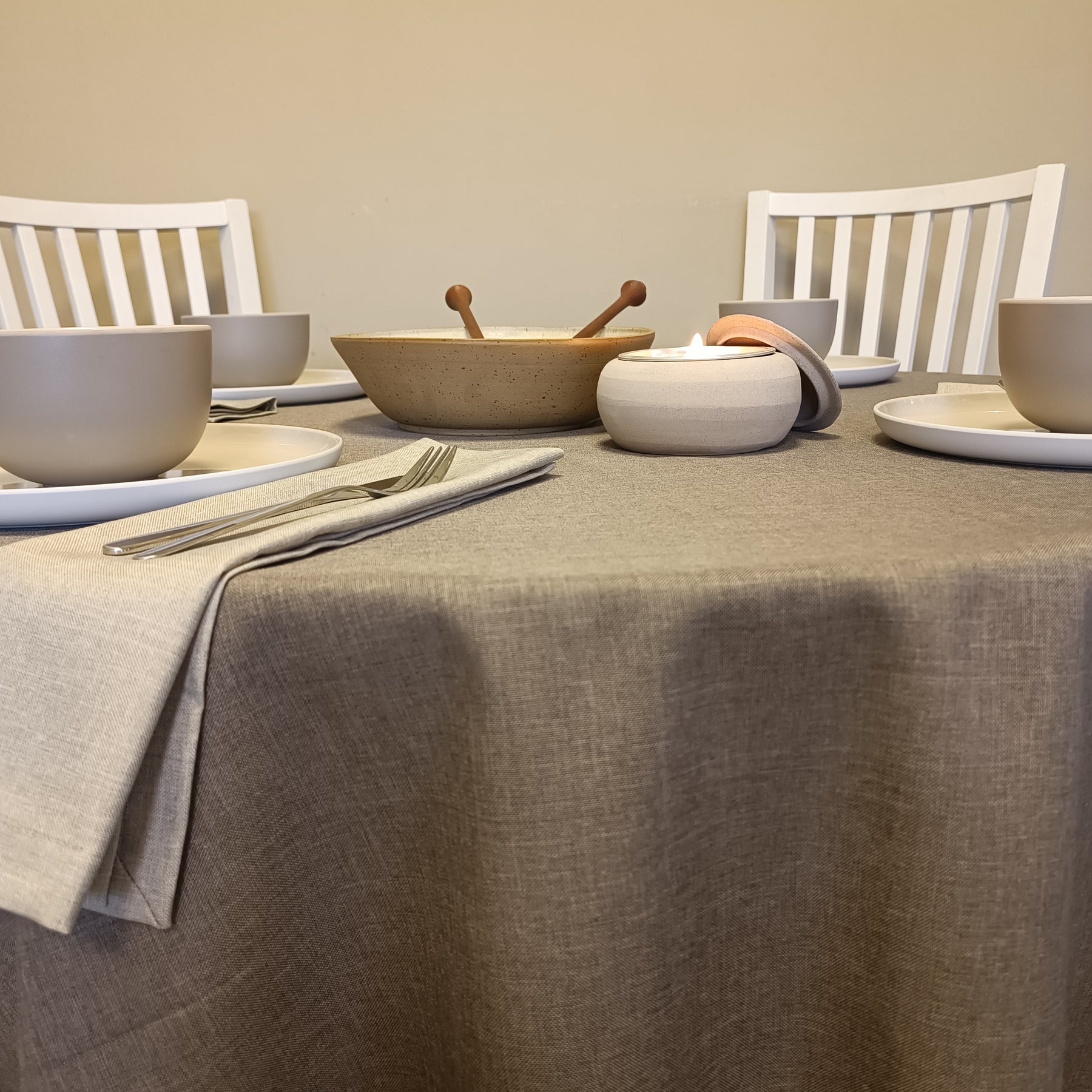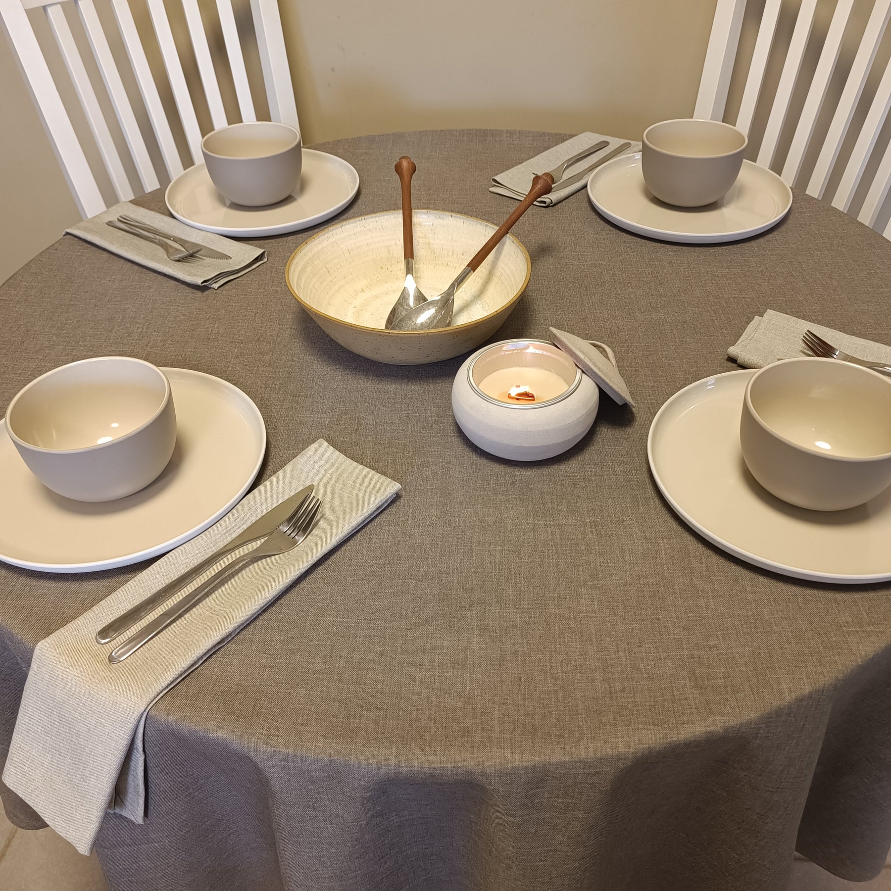 מפת שולחן עגולה ארוג חום עכבר<br>Woven Mouse Brown Round Tablecloth
